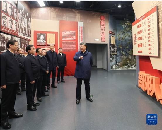 12月3日上午,在返京途中,习近平在江苏省委书记信长星和省长许昆林陪同下,来到盐城市参观新四军纪念馆。展厅里,一张张照片、一份份史料、一件件文物、一个个模拟实景,完整展现了新四军浴火重生、浴血奋战的光辉历史。习近平不时驻足察看、同大家交流。他强调,新四军的历史充分说明,民心向背决定着历史的选择,江山就是人民、人民就是江山。这是开展革命传统教育、爱国主义教育的生动教材,要用好这一教材,教育引导党员、干部传承发扬不怕困难、不畏艰险,勇于斗争、敢于胜利的精神,紧紧依靠人民,把强国建设、民族复兴伟业不断推向前进。